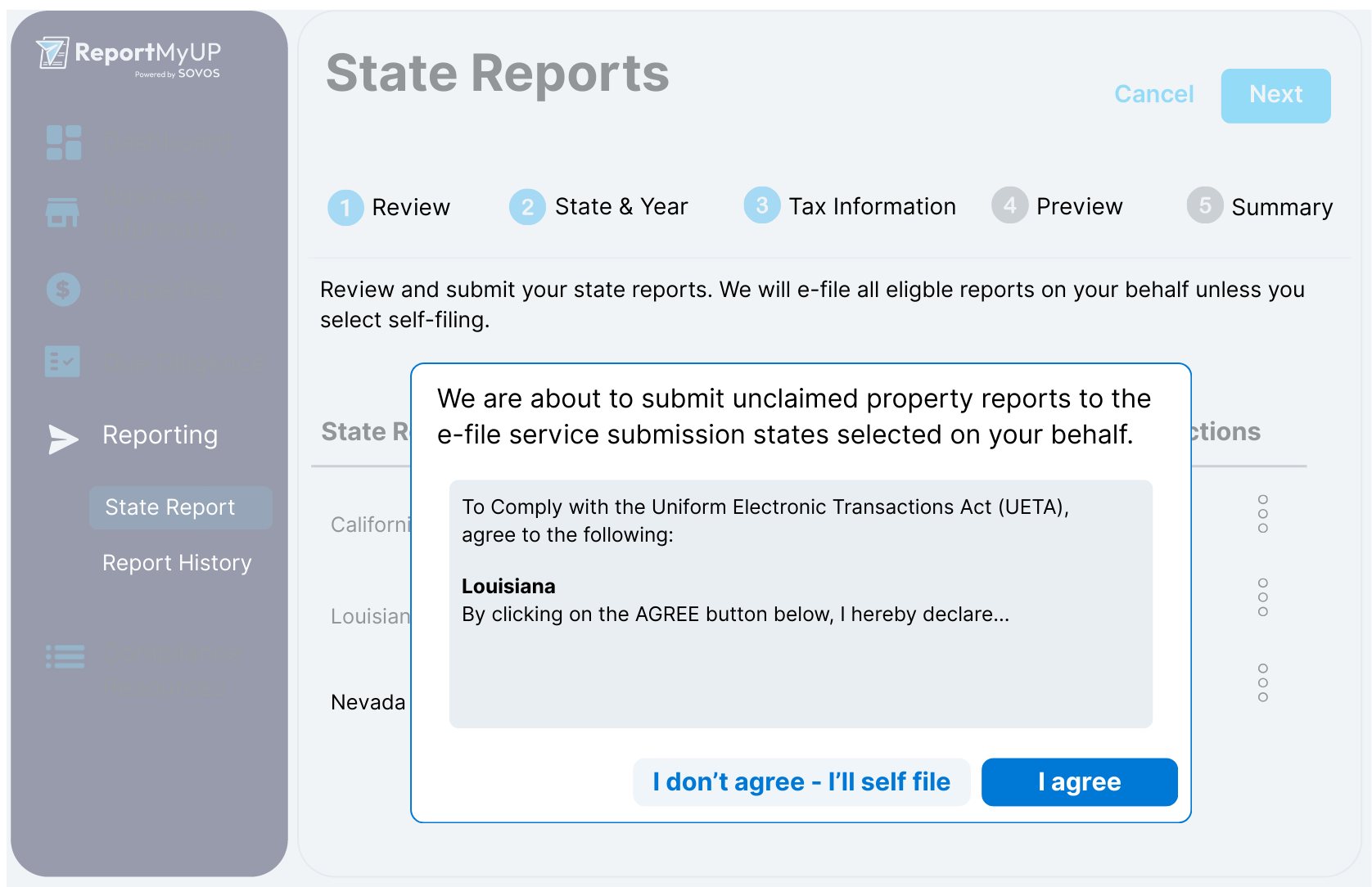 ReportMyUP powers Sovos Filing Network, our seamless electronic filing solution for unclaimed property reporting. Connect directly with 30+ state, territory, and province agencies through our exclusive electronic filing system, eliminating manual submissions and reducing compliance risks. ReportMyUP transforms tedious regulatory work into a streamlined process, saving you valuable time while ensuring accuracy. As the industry's only solution with built-in electronic filing, we've reimagined unclaimed property management for the digital age.